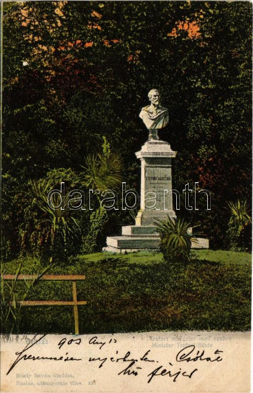 1903 Buziásfürdő, Baile Buzias; Trefort Ágoston miniszter mellszobra. ... https://www.darabanth.com/hu/510-Gyorsarveres/510.0/Kepeslapok/Erdely~495/1903-Buziasfurdo-Baile-Buzias-Trefort-Agoston-miniszter-mellszobra-Huzly-Istvan-kiadasa-M~II3454038