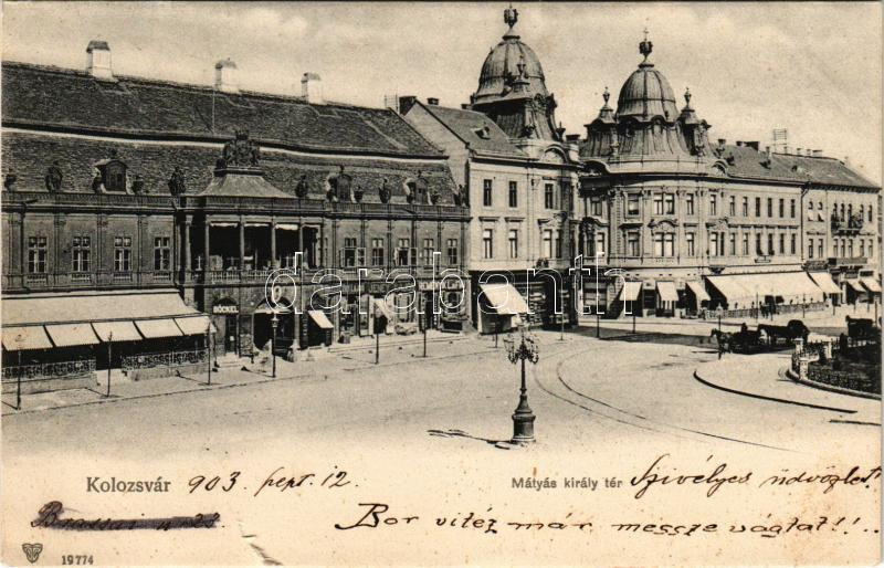 1903 Kolozsvár, Cluj; Mátyás király tér, Böckel, Reményik L. és Fiai, ... https://www.darabanth.com/hu/510-Gyorsarveres/510.0/Kepeslapok/Erdely~495/1903-Kolozsvar-Cluj-Matyas-kiraly-ter-Bockel-Remenyik-L-es-Fiai-Jeney-Lajos-uzlete-~II3448384