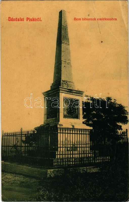 1908 Piski, Simeria; Bem tábornok emlékszobor. W.L. 3131. / monument (... https://www.darabanth.com/hu/510-Gyorsarveres/510.0/Kepeslapok/Erdely~495/1908-Piski-Simeria-Bem-tabornok-emlekszobor-WL-3131-monument-EB~II3430166