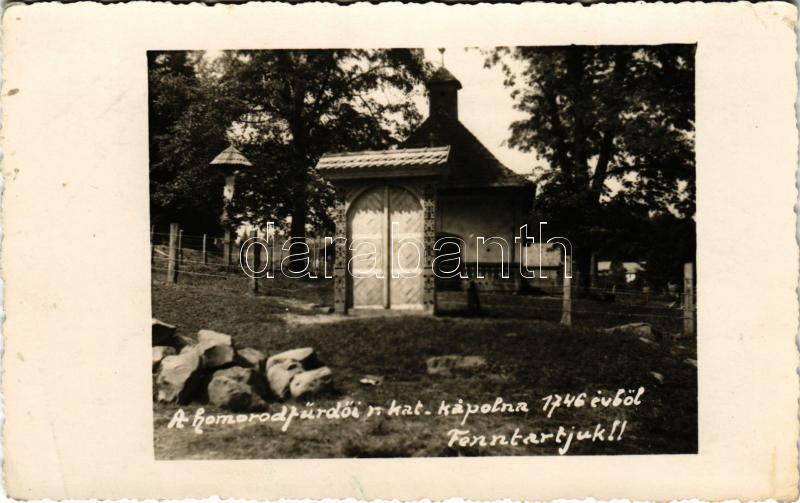 1942 Homoródfürdő, Baile Homorod; római katolikus kápolna 1746. évből.... https://www.darabanth.com/hu/510-Gyorsarveres/510.0/Kepeslapok/Erdely~495/1942-Homorodfurdo-Baile-Homorod-romai-katolikus-kapolna-1746-evbol-Fenntartjuk-chapel-~II3447191