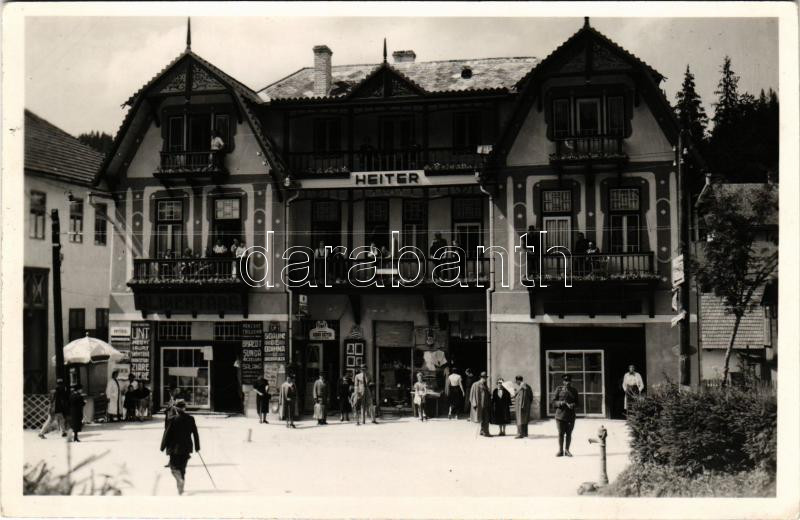 Borszék, Borsec; Georg Heiter, alimentara / utca, élelmiszer üzlet, Heiter György udvari fényképész üzlete, felvétele és kiadása / street view, shops, photo