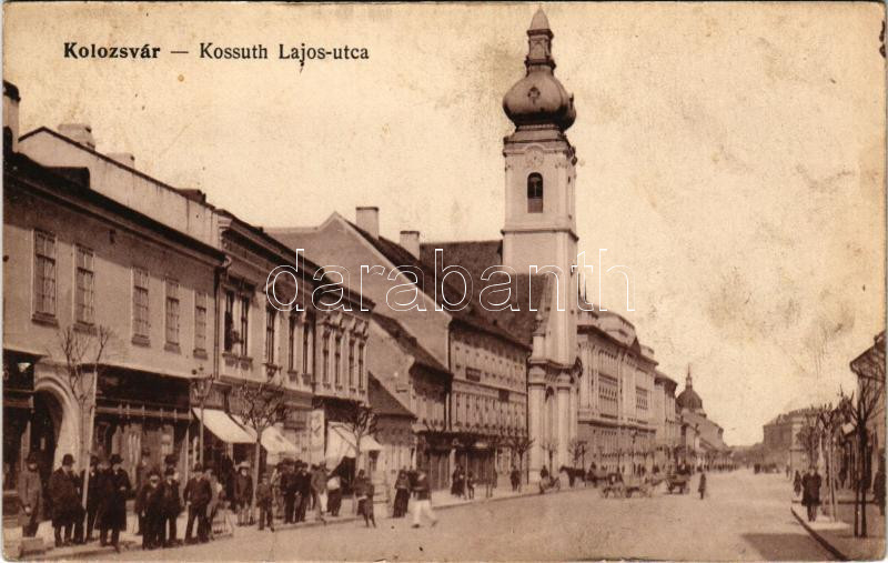 Kolozsvár, Cluj; Kossuth Lajos utca, üzletek, templom. Weiszfeiler Sán... https://www.darabanth.com/hu/510-Gyorsarveres/510.0/Kepeslapok/Erdely~495/Kolozsvar-Cluj-Kossuth-Lajos-utca-uzletek-templom-Weiszfeiler-Sandor-kiadasa-street-view-~II3445584