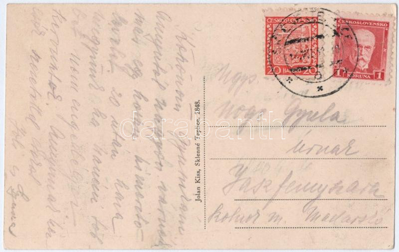 Szklenófürdő, Sklené Teplice; ház. Kiss Jolán kiadása / house (EK) https://www.darabanth.com/hu/510-Gyorsarveres/510.0/Kepeslapok/Felvidek~496/Szklenofurdo-Sklene-Teplice-haz-Kiss-Jolan-kiadasa-house-EK~II3422581