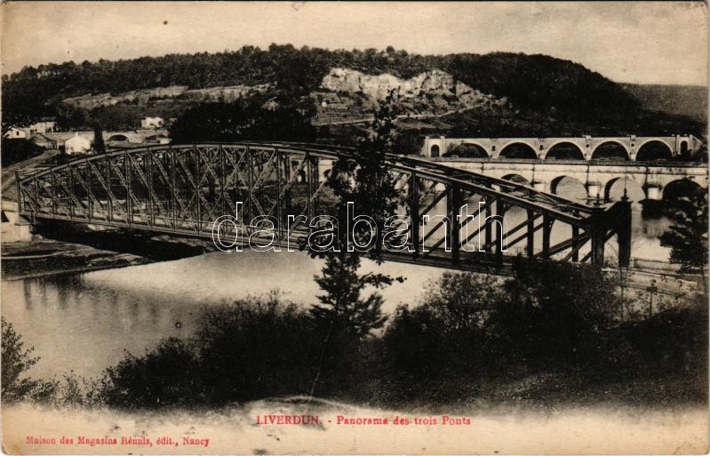 Leírás: Liverdun, Panorama des trois Ponts. Maison des Magasins Réunis / railway bridge (EK)
