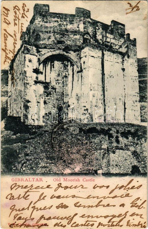 1906 Gibraltar, Old Moorish Castle. V. B. Cumbo (crease) https://www.darabanth.com/hu/510-Gyorsarveres/510.0/Kepeslapok/Gibraltar~515/1906-Gibraltar-Old-Moorish-Castle-V-B-Cumbo-crease~II3431267