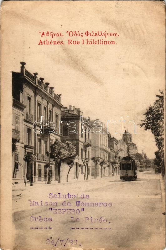 1922 Athens, Athína, Athenes; Rue Philellinon / street view, tram (fl) https://www.darabanth.com/hu/510-Gyorsarveres/510.0/Kepeslapok/Gorogorszag~517/1922-Athens-Athina-Athenes-Rue-Philellinon-street-view-tram-fl~II3434029