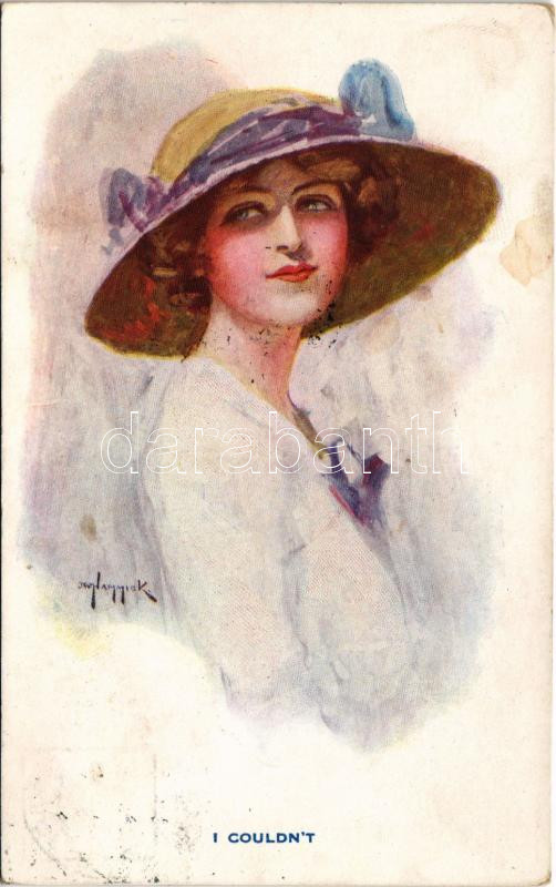Leírás: 1914 I couldn't. The Charterhouse Series of Head Studies, lady art postcard. No. 447/3. artist signed (fl)