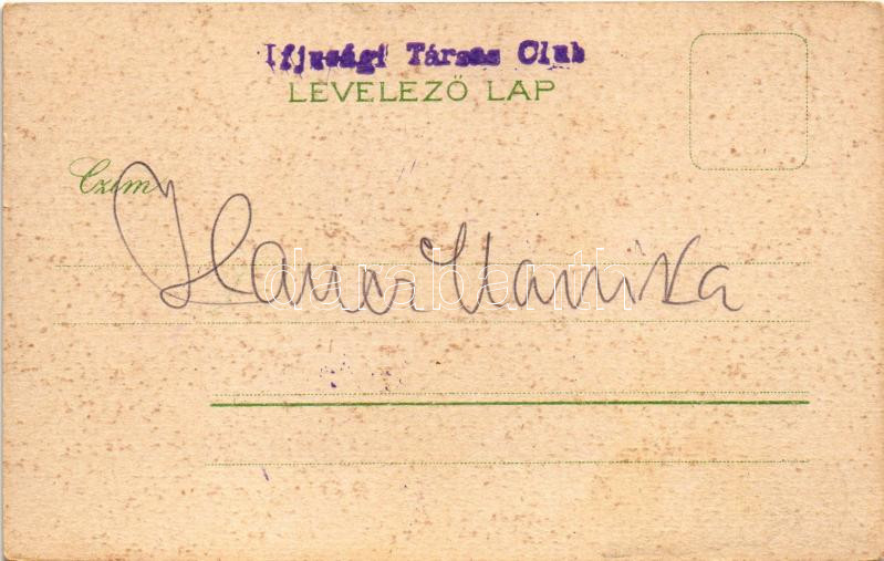 Leírás: Fohászod már mind hiába, hátat fordított a gólya... / humour art postcard with stork, litho (fl)