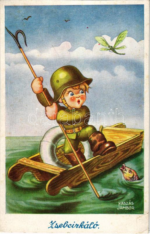 Zsebcirkáló / Child soldier, humour s: Kaszás Jámbor (r) https://www.darabanth.com/hu/510-Gyorsarveres/510.0/Kepeslapok/Humor~564/Zsebcirkalo-Child-soldier-humour-s-Kaszas-Jambor-r~II3414639