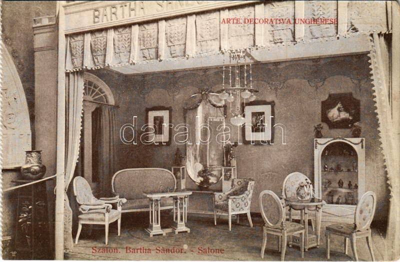 Milano, Milan; Prima Esposizione Internazionale d'Arte Decorativa Moderna, Salone / világkiállítás magyar pavilonja, szalon, Bartha Sándor, képeslapfüzetből / exposition of modern decorative arts, Hungary, from a postcard booklet (EK)