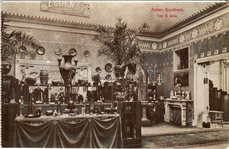 Milano, Milan; Prima Esposizione Internazionale d'Arte Decorativa Moderna, Vasi di lusso / világkiállítás magyar pavilonja, Zsolnay díszedények, képeslapfüzetből / exposition of modern decorative arts, Hungary, from a postcard booklet (EM)
