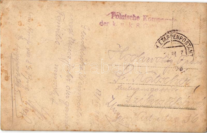1917 Katona kutyával / WWI soldier with a dog. photo + "Polnische... https://www.darabanth.com/hu/510-Gyorsarveres/510.0/Kepeslapok/Katonai~569/1917-Katona-kutyaval-WWI-soldier-with-a-dog-photo-plus-Polnische-Kompagnie-EK~II3428107