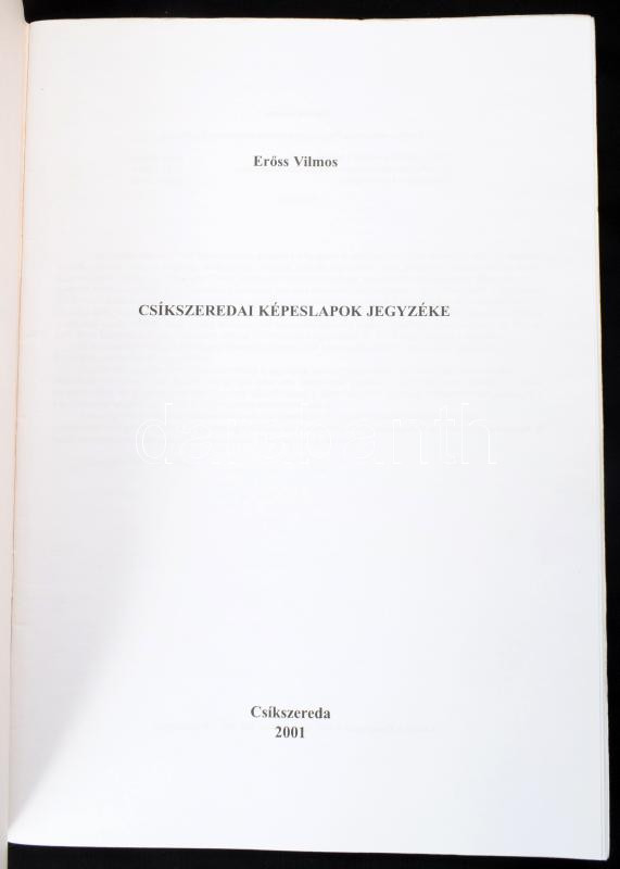 Erőss Vilmos - Csíkszeredai képeslapok jegyzéke. Csíkszereda, 2001. 34... https://www.darabanth.com/hu/510-Gyorsarveres/510.0/Kepeslapok/Kepeslap-szakirodalom~590/Eross-Vilmos-Csikszeredai-kepeslapok-jegyzeke-Csikszereda-2001-34p-Kiadoi-papirkotesb~II3447954