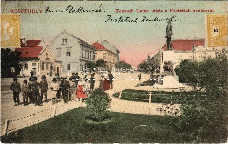 1908 Keszthely, Kossuth Lajos utca, Festetich szobor, Magy. kir. posta... https://www.darabanth.com/hu/510-Gyorsarveres/510.0/Kepeslapok/Magyarorszag~494/1908-Keszthely-Kossuth-Lajos-utca-Festetich-szobor-Magy-kir-posta-es-tavirda-Pler-Lipot-uz~II3403599