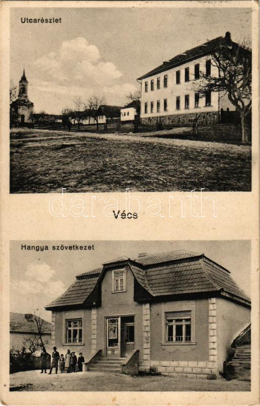 1933 Vécs, utcarészlet, templom, Hangya Szövetkezet üzlete (EK) https://www.darabanth.com/hu/510-Gyorsarveres/510.0/Kepeslapok/Magyarorszag~494/1933-Vecs-utcareszlet-templom-Hangya-Szovetkezet-uzlete-EK~II3430168