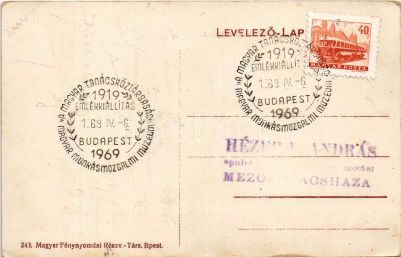 Budapest II. Pesthidegkút, Hidegkút; Római katolikus templom + "A Magyar Tanácsköztársaság Magyar Munkásmozgalmi Múzeum 1919-1969 Emlékkiállítás Budapest" So. Stpl. (fl)
