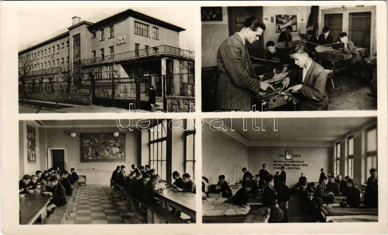 Budapest III. Ady Endre fiúotthon (korábban Székesfővárosi Szél utcai Fiúotthon, ma Vécsey János Leánykollégium), tanterem, ebédlő, belső. Szél utca 11. Művészeti Alkotások