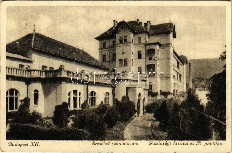Budapest XII. Erzsébet Szanatórium, Gazdasági hivatal és "A"... https://www.darabanth.com/hu/510-Gyorsarveres/510.0/Kepeslapok/Magyarorszag~494/Budapest-XII-Erzsebet-Szanatorium-Gazdasagi-hivatal-es-A-pavillon-Kamaras-Andras-kiadasa~II3430464