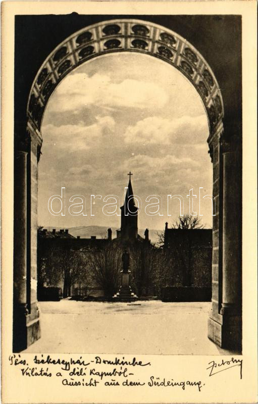 Pécs, Székesegyház, kilátás a déli kapuból, télen. Pécs Szabad Király város az I. Országos Credo nap emlékére 1929. június 8-9. Kiadja Zsabokorszky mérnök. photo