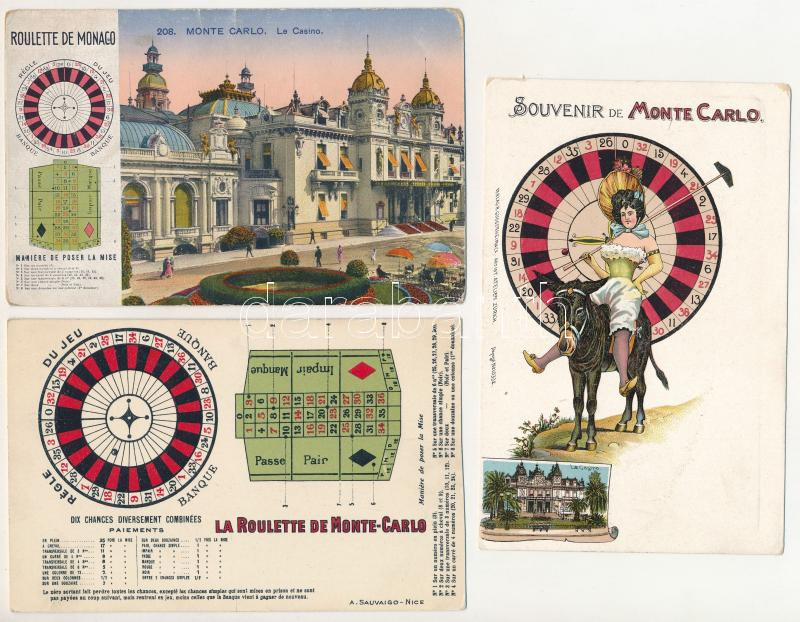 Monte Carlo - 3 pre-1945 postcards: Roulette, Casino https://www.darabanth.com/hu/510-Gyorsarveres/510.0/Kepeslapok/Monaco~532/Monte-Carlo-3-pre-1945-postcards-Roulette-Casino~II3450351