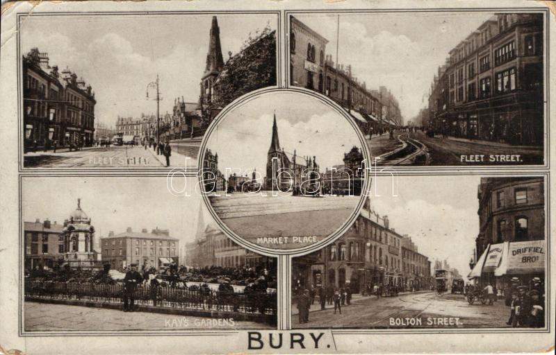 Bury; Market place, Fleet street, kay's gardens, Bolton street (E... https://www.darabanth.com/hu/510-Gyorsarveres/510.0/Kepeslapok/Nagy-Britannia~534/Bury-Market-place-Fleet-street-kays-gardens-Bolton-street-EB~II1360577