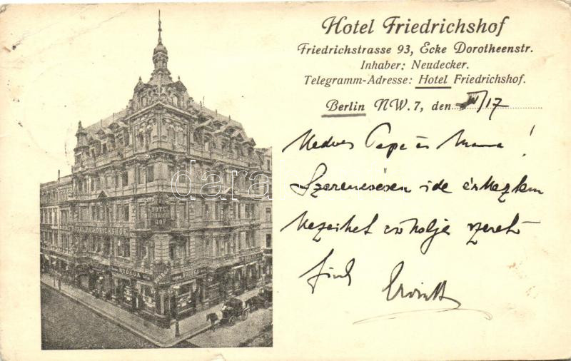 Leírás: Berlin, Friedrichstrasse, Hotel Friedrichshof (small tear)