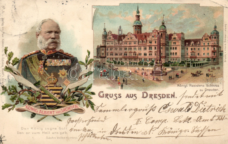 Leírás: Dresden, King Albert von Sachsen Emb. litho (EK)