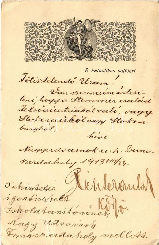 Leírás: 1913 A katholikus sajtóért. Szecessziós egyházi propaganda / For the Catholic press. Hungarian Art Nouveau ecclesiastic propaganda (r)