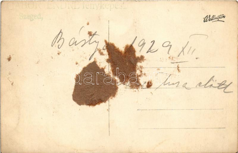 1929 Szegedi Bástya FC futballistái télen, focisták / Hungarian football players in winter. Gábor Endre fényképész (Szeged) photo (ragasztónyom / glue marks)
