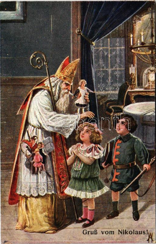 1917 Gruss vom Nikolaus! / Mikulás gyerekekkel / Saint Nicholas with c... https://www.darabanth.com/hu/510-Gyorsarveres/510.0/Kepeslapok/Udvozlolapok-Unnepek~586/1917-Gruss-vom-Nikolaus-Mikulas-gyerekekkel-Saint-Nicholas-with-children-greeting-art-postcard~II3447930
