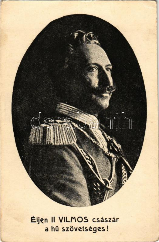 Éljen II. Vilmos császár, a hű szövetséges / Franz Joseph I of Austria... https://www.darabanth.com/hu/510-Gyorsarveres/510.0/Kepeslapok/Uralkodo-Politikus~585/Eljen-II-Vilmos-csaszar-a-hu-szovetseges-Franz-Joseph-I-of-Austria-Wilhelm-II-Viribus-Un~II3414542