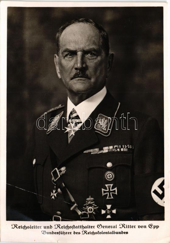 Reichsleiter und Reichsstatthalter General Ritter von Epp, Bundesführer des Reichskolonialbundes / General Franz Ritter von Epp. Reichskommissar, later Reichsstatthalter, for Bavaria, and a Reichsleiter of the NSDAP German Nazi Party during the Third Reich. Photo-Grainer (München) + "Deutsche Kolonialausstellung WIEN 10-30. Juni 1940" So. Stpl. (EB)