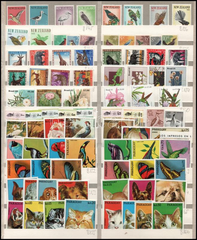 Leírás: 74 db bélyeg (17 db sor), nagyrészt állat motívumok, nagyalakú berakólapon