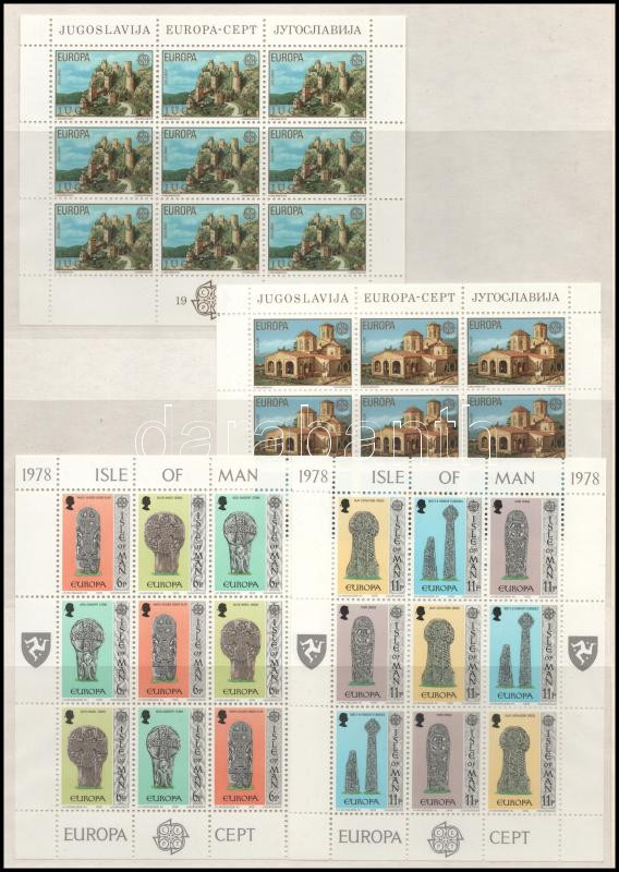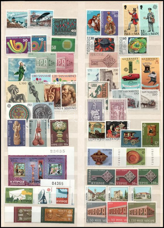 Leírás: Europa CEPT kiadások nagyrészt kisállamokból, köztük ívszéliek, összefüggések is, összesen 59 db bélyeg + 4 db kisív 2 db nagyalakú berakólapon