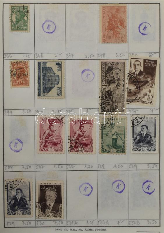 Leírás: Kb 4.500-5.000 db bélyeg 7 db cserefüzetben, benne Szovjetunó, angol gyarmatok, Németország, Europa CEPT, Finnország stb.