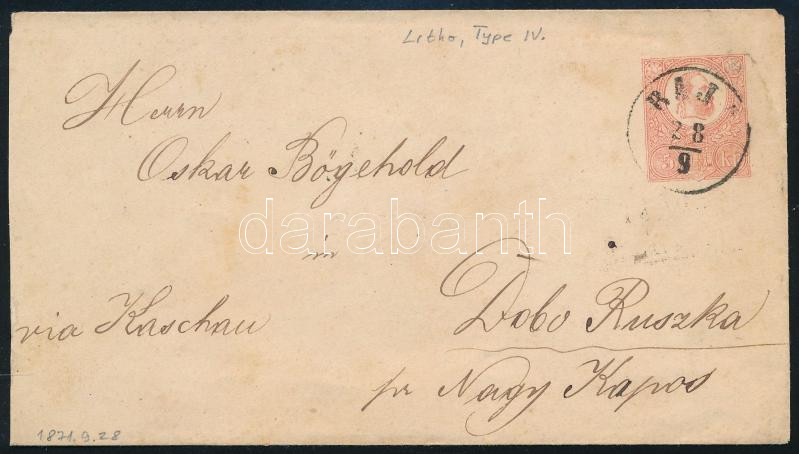 Leírás: 1871 Kőnyomat 5kr díjjegyes boríték IV. típus "BAJA" - "KASSA" - ""NAGY-KAPOS" - "UNGHVÁR" - Dobo Ruszka (Kárpátalja)