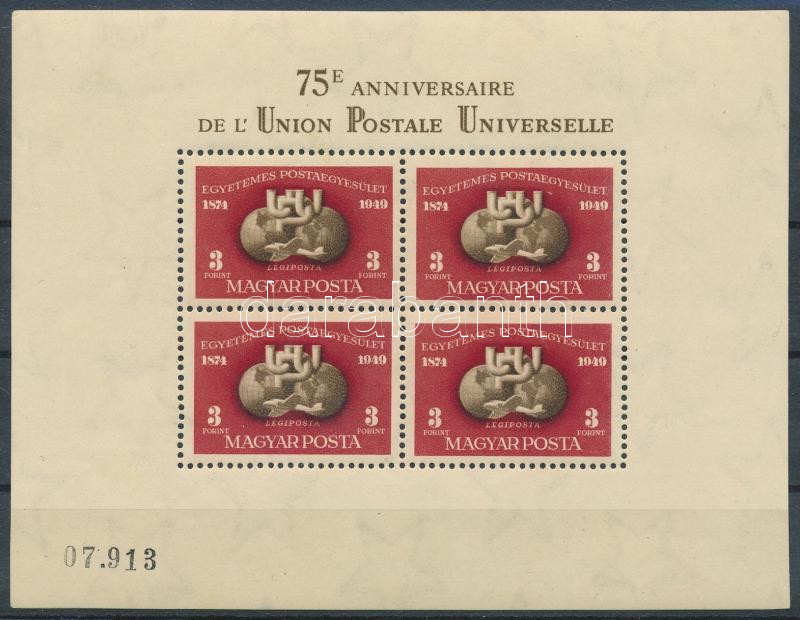 Leírás: 1950 UPU (I.) blokk (180.000) (kis gumihiba / small gum disturbance)