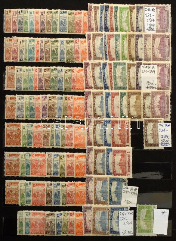 Leírás: 1916-1922 Többpéldányos magyar készlet 8 lapos A4-es berakóban + Portó tétel 6 lapos közepes berakóban + 2 db borítékban ömlesztve, dobozban