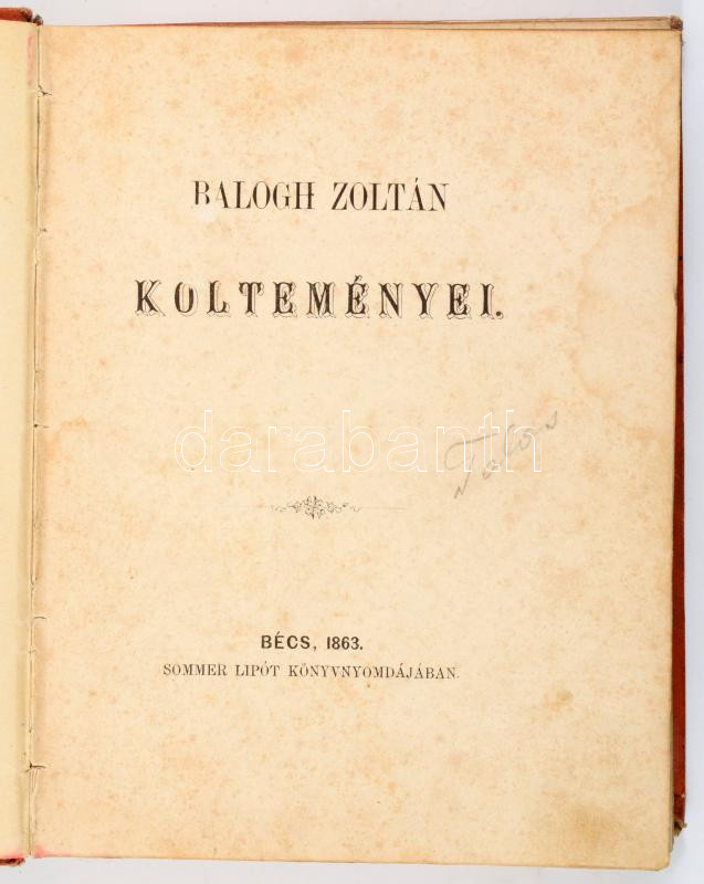 Balogh Zoltán költeményei. Bécs, 1863. Sommer Lipót. 320p. Néhány kora... https://www.darabanth.com/hu/510-Gyorsarveres/510.0/Konyvek/Konyvek-Egyeb-ritkasagok~785/Balogh-Zoltan-koltemenyei-Becs-1863-Sommer-Lipot-320p-Nehany-korabeli-ceruzas-bejegyze~II3450329