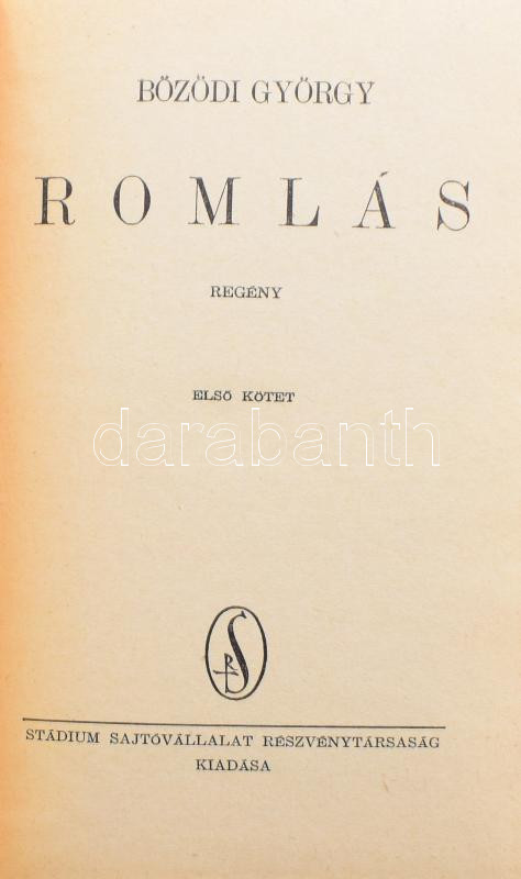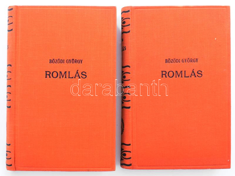 Bözödi György: Romlás. I-II. köt. (Bp., 1940), Stádium, 252 p.; 300 p.... https://www.darabanth.com/hu/510-Gyorsarveres/510.0/Konyvek/Konyvek-Egyeb-ritkasagok~785/Bozodi-Gyorgy-Romlas-I-II-kot-Bp-1940-Stadium-252-p-300-p-Elso-kiadas-EgeszvC3~II3413657