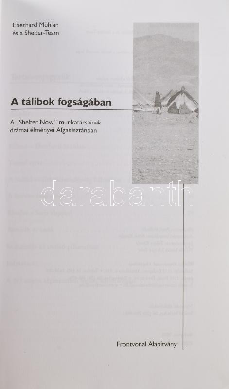 Leírás: Eberhard Mühlan - Shelter Team: A tálibok fogságában. A "Shelter New" munkatársainak drámai élményei Afganisztánban. Ford.: Petró Melinda. Bp., 2003., Frontvonal Alapítvány. Kiadói kartonált papírkötés.