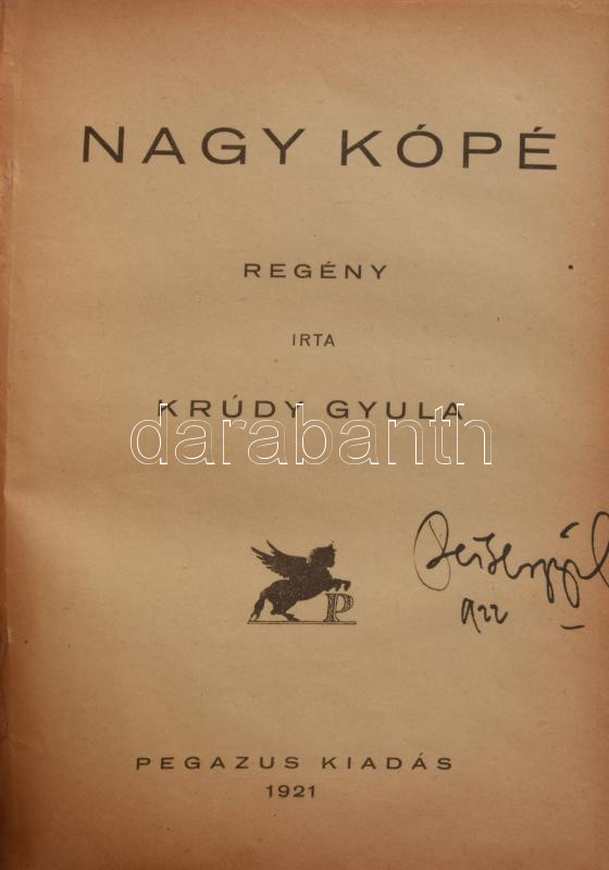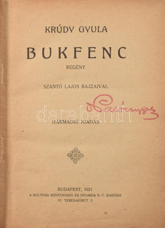 Krúdy Gyula: Bukfenc. A Kultura Regénytára I. Bp., 1918, Kultura Könyvkiadó Rt.,(Krausz J. és Társa),4+112+4 p. Harmadik kiadás. + Nagy kópé . Bp., 1921. Pegazus. Első kiadás. Korabeli vászon kötésben