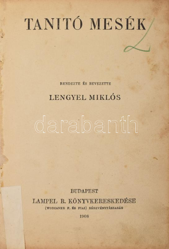 Lengyel Miklós: Tanító mesék. Bp., 1908, Lampel R. (Wodianer F. és Fia... https://www.darabanth.com/hu/510-Gyorsarveres/510.0/Konyvek/Konyvek-Egyeb-ritkasagok~785/Lengyel-Miklos-Tanito-mesek-Bp-1908-Lampel-R-Wodianer-F-es-Fiai-Rt-116-p-Atkotot~II3432677