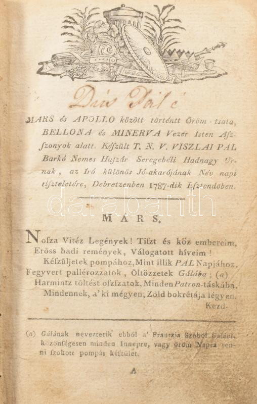 Leírás: Mátyási József: Semminél több valami. Pozsony, 1794, Wéber Simon Péter. (XX + 310 p.) 304p. Félvászon kötés, hiányos (pl. címlap hiányzik), javított lapok, kopottas állapotban.
