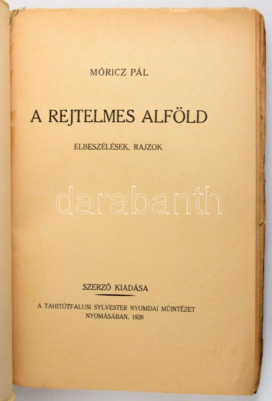 Móricz Pál: A rejtelmes Alföld. Elbeszélések, rajzok. [Bp.], 1926 Szer... https://www.darabanth.com/hu/510-Gyorsarveres/510.0/Konyvek/Konyvek-Egyeb-ritkasagok~785/Moricz-Pal-A-rejtelmes-Alfold-Elbeszelesek-rajzok-Bp-1926-Szerzoi-kiadas-Tahitofalu~II3450826