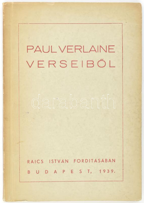 Paul Verlaine verseiből. Ford.: Raics István. Bp., 1939., (Turcsány-ny... https://www.darabanth.com/hu/510-Gyorsarveres/510.0/Konyvek/Konyvek-Egyeb-ritkasagok~785/Paul-Verlaine-verseibol-Ford-Raics-Istvan-Bp-1939-Turcsany-ny-48-p-Kiadoi-papirko~II3192933