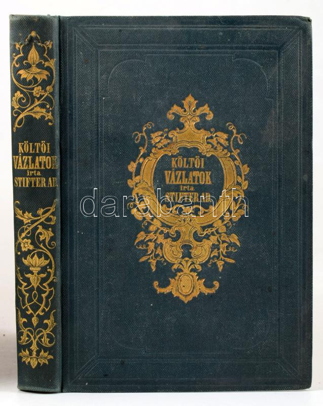 Leírás: Stifter Adalbert: Költői vázlatok. Németből. Pest, 1862. Heckenast Gusztáv, 1 t. (acélmetszettű díszcímlap)+415 p. Kiadói aranyozott egészvászon-kötés, aranyozott lapélekkel,