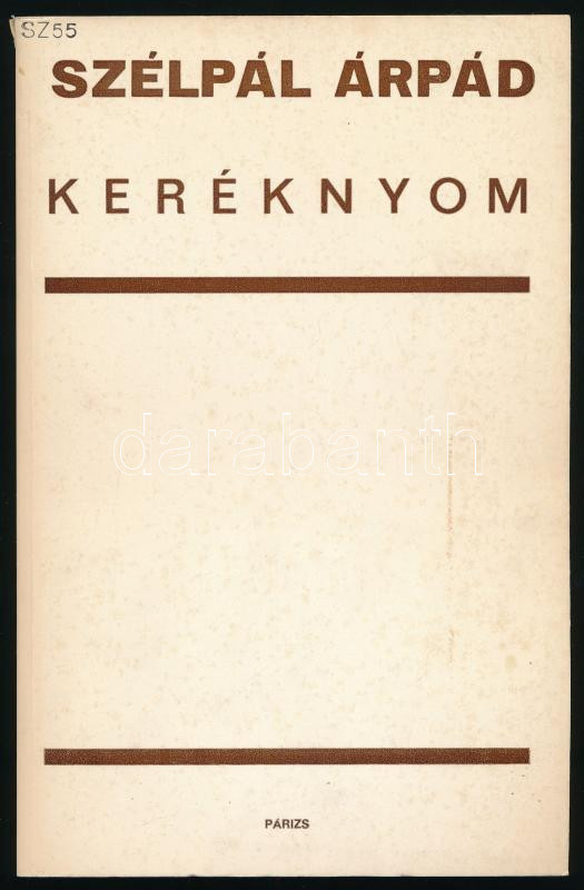 Szélpál Árpád: Keréknyom. Párizs, 1979., Magyar Műhely, 148+4 p. Első ... https://www.darabanth.com/hu/510-Gyorsarveres/510.0/Konyvek/Konyvek-Egyeb-ritkasagok~785/Szelpal-Arpad-Kereknyom-Parizs-1979-Magyar-Muhely-148plus4-p-Elso-kiadas-Emigrans-kia~II3218999
