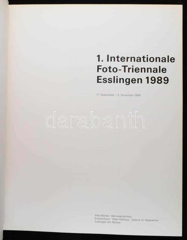 1. Internationale Foto-Triennale Esslingen 1989. Esslingen am Neckar, 1988, Verlag Beatrix Wilhelm Stuttgart. Német nyelven. Gazdag képanyaggal illusztrált. Kiadói papírkötés.