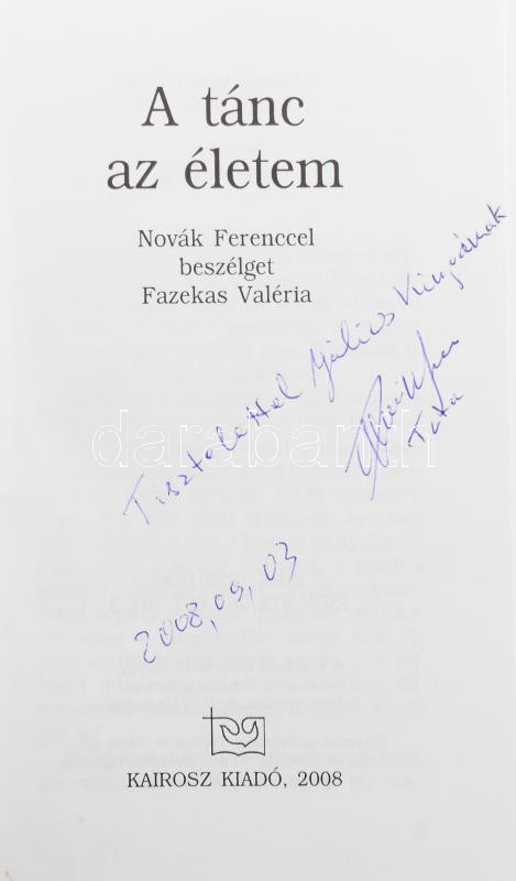A tánc az életem. Novák Ferenccel beszélget Farkas Valéria. Novák Ferenc Tata (1931-2024) Kossuth-díjas és Erkel Ferenc-díjas magyar koreográfus, rendező, etnográfus által Jálics Kinga (1943-2019) kulturális újságíró, szerkesztő részére DEDIKÁLT példány. Magyarnak Lenni XXXIX. köt. Bp., 2008, Kairosz. Kiadói papírkötés.